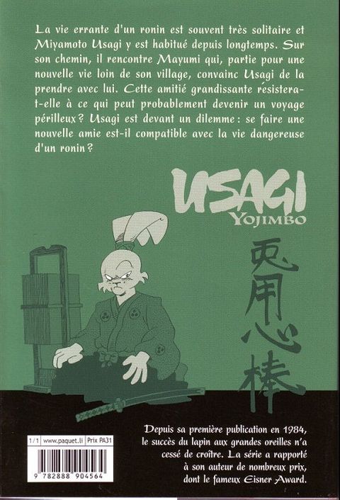 La vie errante d'un ronin est souvent très solitaire et Miyamoto Usagi y est habitué depuis longtemps. Sur son chemin, il rencontre Mayumi qui, partie pour une nouvelle vie loin de son village, convainc Usagi de la prendre avec lui. Cette amitié grandissante résistera-t-elle à ce qui peut probablement devenir un voyage périlleux ? Usagi est devant un dilemme: se faire une nouvelle amie est-il compatible avec la vie dangereuse d'un ronin ?