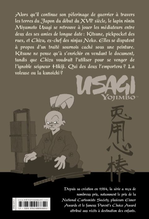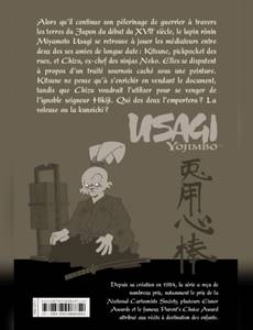 Le célèbre lapin-Ronin de Stan Sakai revient pour une trentième aventure !!! Miyamoto Usagi s'associe avec un voleur et un samouraï pour contrecarrer un commerce de ginseng au marché noir, rencontre un ronin qui a perdu son bras dans un duel mais qui a encore plus d'un tour dans sa manche. Usagi vivra bien d'autres aventures dans cet album anniversaire. Dans un monde idéal, tout le monde doit lire Usagi Yojimbo. C'est le meilleur moment pour commencer à le faire !
