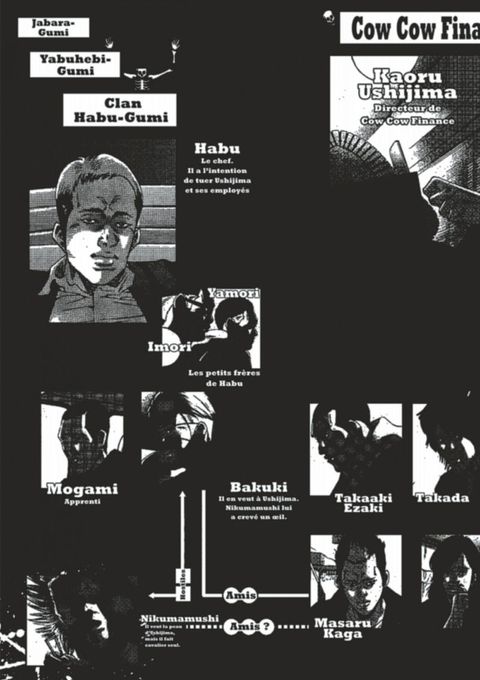 Une journée ordinaire débute pour Ushijima : des clients font la queue pour lui emprunter de l'argent. Pour Takada qui débute au service de l'usurier, c'est la découverte d'un monde souterrain où l'argent règne en maître. Guidé par Ushijima, Takada apprend les ficelles du métier, et les combines pour soutirer aux clients leurs derniers sous... Sans aucun état d'âme !