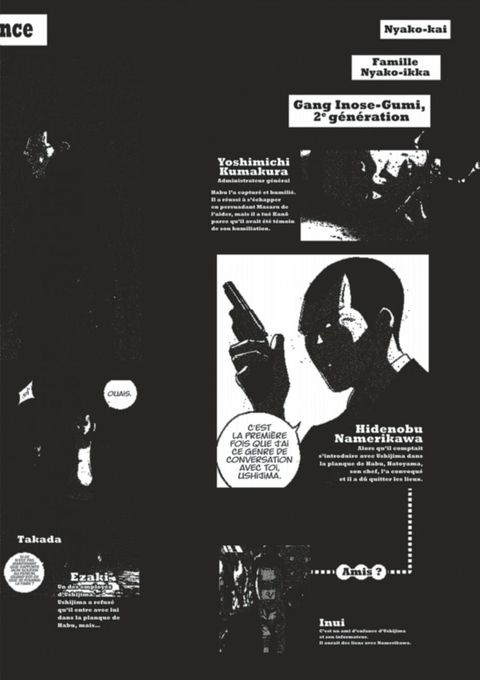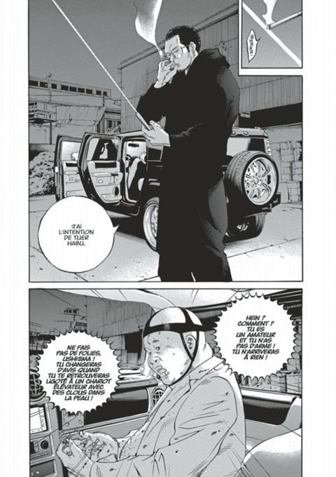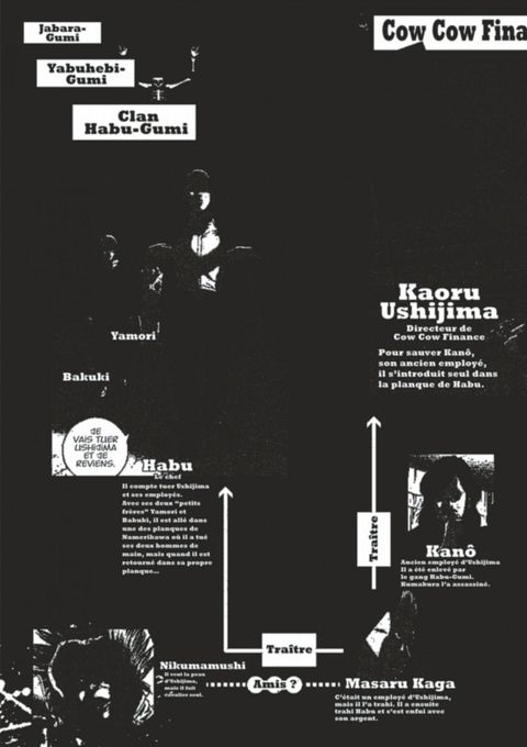 Sur les pas d'Ushijima, un 'encaisseur' qui travaille pour le compte des yakuzas, le lecteur rencontrera une série de personnages tombés dans la déchéance du surendettement. Au travers de ces destinées toutes plus tragiques les unes que les autres, c'est un portrait original de la 'société d'en bas' que l'on découvre dans ce manga avec, par exemple, une jeune fille ne résistant pas à la pression sociale et se ruinant en vêtements de luxe ou un joueur invétéré et obsessionnel qui y laisse sa chemise et même plus, etc. Ushijima, l'usurier de l'ombre est un manga vraiment étonnant ! On rentre dans un univers très noir où les yakuzas règnent en maîtres, où blanchiment d'argent et combines en tout genre fleurissent dans un univers urbain décalé. Shohei Manabe fait partie des auteurs les plus prometteurs de la jeune génération de mangakas. Son style reconnaissable entre tous, avec un trait incisif, chargé d'encre est fascinant. Le style que ce soit du dessin ou des histoires présente un curieux mélange entre expressionnisme et western. La facilité de Shohei Manabe à restituer sa fascination pour la violence et la noirceur de l'âme humaine sans se perdre dans le propos en fait un des grands auteurs de roman noir graphique.