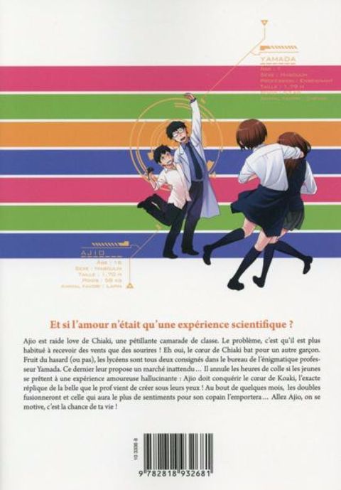 Ajio est raide love de Chiaki, une pétillante camarade de classe. Le problème, c'est qu'il est plus habitué à recevoir des vents que des sourires ! Eh oui, le coeur de Chiaki bat pour un autre garçon. Fruit du hasard (ou pas), les lycéens sont tous deux consignés dans le bureau de l'énigmatique professeur Yamada. Ce dernier leur propose un marché inattendu. Il annule les heures de colle si les jeunes se prêtent à une expérience amoureuse hallucinante : Ajio doit conquérir le coeur de Koaki, l'exacte réplique de la belle que le prof vient de créer sous leurs yeux ! Au bout de quelques mois, les doubles fusionneront et celle qui aura le plus de sentiments pour son copain l'emportera. Allez Ajio, on se motive, c'est la chance de ta vie !