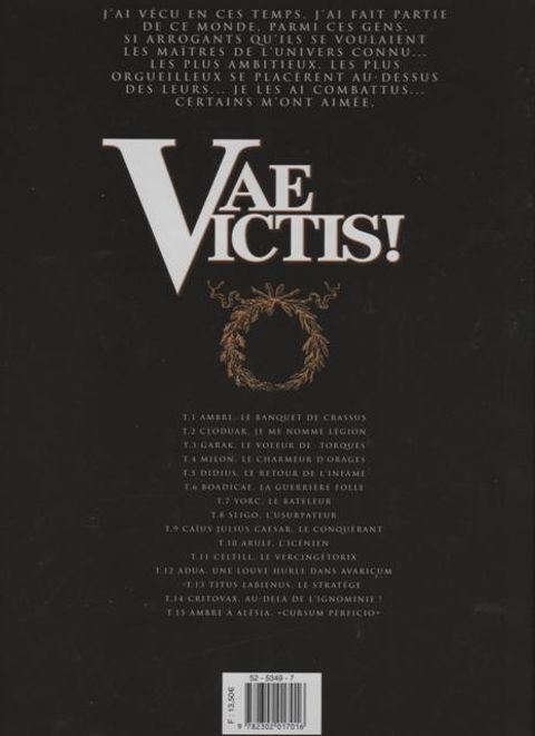Plongez au coeur de la Guerre des Gaules à travers les aventures d'une jeune bretonne. César, consul romain et génie militaire, entreprend la conquête de la Gaule. Esclave, Ambre découvre les projets de l'ambitieux général et s'échappe pour prévenir son peuple et déjouer les sombres desseins de Rome. Une fresque issue de l'Histoire, un récit épique... La lutte désespérée d'une femme pour son idéal de liberté.