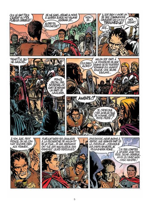 Tout ce que vous avez voulu savoir sur la Guerre des Gaules (58 - 52 avant J.C.). Comment un génie militaire, tyran sans pitié et sans scrupules, a conquis un pays plus grand que le sien... profitant de la bêtise crasse des tribus gauloises, de leurs superstitions, de leurs rivalités, de leur orgueil démesuré, de leur indiscipline et de leur avidité... Cela malgré Ambre, jeune esclave bretonne qui a surpris les projets du consul César, et qui tente d'en avertir ses compatriotes. Mais à l'instar de la troïenne Cassandre, nul ne l'écoute...sauf peut-être ses amoureux : le médecin (espion ?) étrusque Milon, Garak le père de son enfant, Cloduar son garde du corps... Esclave, prisonnière, reine, gladiatrice, combattante, Ambre/Boadicaë sera à la pointe de tous les combats contre l'envahisseur romain. Personnification de la Gaule, elle mène une lutte désespérée pour son idéal de liberté... N'hésitant pas à sacrifier sa personne, à donner son corps aux puissants (Pompée, César, Vercingétorix) pour faire aboutir sa quête...