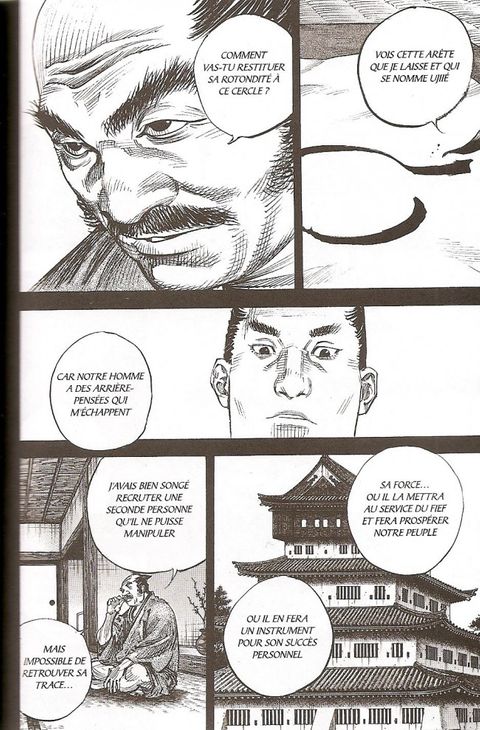 Un très bon tome comme d'habitude. Musashi Miyamoto en aura fait de la route depuis le tome, sans cesse entrain de remettre en question son état d'esprit et surtout son art du sabre ça devient de plus en plus intéressant.
