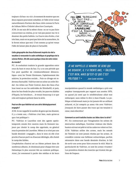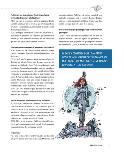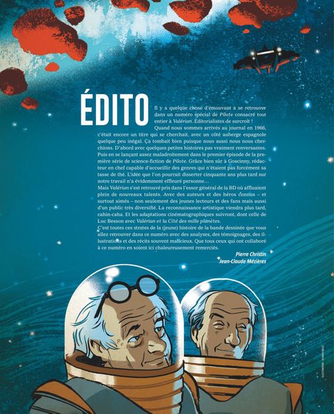 Une version souple est aussi sortie. Apparu dans les pages du magazine Pilote en 1967, Valérian est vite devenue une figure emblématique de ce journal. Cela fera tout juste 50 ans que Christin et Mézières ont publié, dans Pilote, leur première histoire et, à cette occasion, une version cartonnée du journal qui sortira cet été sera également disponible en librairie. Au sommaire, de nombreux hommages d'auteurs en bande dessinée, des témoignages de personnalités dont Luc Besson et une partie de l'équipe du film; des dossiers sur la SF en BD, en littérature et au cinéma; les previews du prochain Valérian vu par Lupano et Lauffray; l'abécédaire de Valérian, etc.