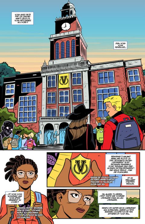 À Valiant High, les adolescents d'aujourd'hui sont entraînés pour devenir les héros de demain. Une seule règle dans l'enceinte du lycée: pas de pouvoirs. Entre les cours, le bal de promo et la grande finale de football américain, Amanda, Faith et les autres élèves tentent d'apprivoiser leurs dons. Mais la mise en pratique pourrait bien arriver plus vite que prévu ! Une menace gronde dans les sous-sols du lycée... et le mystérieux directeur Harada aura besoin de l'aide de tous les élèves.