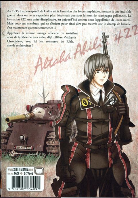 Découvrez le troisième volet de l'adaptation en manga de la célèbre série de jeux vidéo de SEGA, Valkyria Chronicles ! La principauté de Gallia subit l'invasion des forces impériales. La formation 422, une unité disciplinaire, est aujourd'hui connue sous l'appellation de « sans nom ». Mais pour ses membres, qui ne s'étaient pour ainsi dire pas trouvés sur le champ de bataille, c'est maintenant que tout commence !! Appréciez la version manga officielle du troisième opus de la série de jeux vidéo déjà célèbre « Valkyria Chronicles », avec ici les aventures de Riela, une de ses héroïnes !