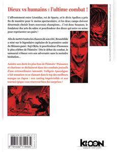 Dieux vs humains : l'ultime combat ! L'affrontement entre Léonidas, roi de Sparte, et le divin Apollon a pris fin de manière pour le moins spectaculaire, et les deux camps doivent désormais choisir leurs nouveaux champions... C'est donc Susanoo, le fondateur des arts du sabre et pourfendeur des dieux qui entre en scène pour représenter ses pairs ! Afin de mettre toutes les chances de son côté, Brunehilde a misé sur le légendaire capitaine de la première unité du Shinsen gumi : Soji Okita, le pourfendeur d'hommes le plus célèbre de l'histoire ! Dès le début du combat, le samouraï s'élance vers son adversaire sans la moindre hésitation... Assistez aux duels les plus fous de l'histoire ! Puissance et charisme se déchaînent dans des combats jouissifs d'une extraordinaire intensité. Valkyrie Apocalypse a fait sensation en se classant dans le top des meilleurs mangas au Japon : son casting imprévisible et son tournoi épique vous réservent bien des surprises !