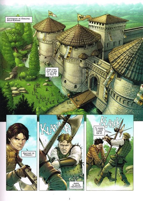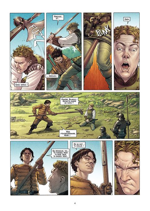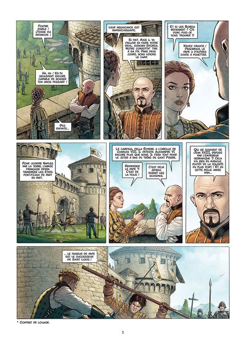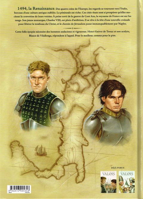 Sur les remparts d'une forteresse, Henri Guivre de Tersac et Blasco de Vilallonga se battent en duel. Blasco finit par avoir le dessus et se joue de son acolyte. Ce combat est un avant-goût de ceux à venir : le lendemain, la légèreté disparaîtra et leur armée, pion sur l'échiquier italien, se mettra en mouvement. Échiquier sur lequel est déjà posé un roi : Charles VIII.