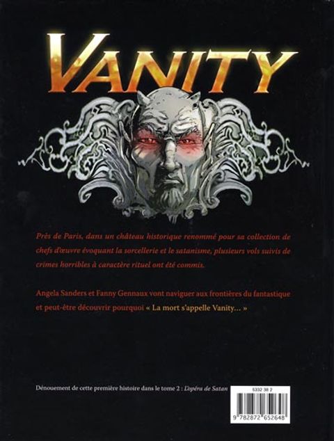 près de paris, dans un château historique renommé pour sa collection de chefs d'oeuvre évoquant la sorcellerie et le satanisme, plusieurs vols suivis de crimes horribles à caractère rituel ont été commis. angela sanders et fanny gennaux vont naviguer aux frontières du fantastique et peut-être découvrir pourquoi "la mort s'appelle vanity..."