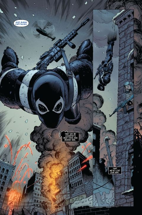 Le gouvernement a mis la main sur Venom et a réussi à en atténuer les effets négatifs. Il propose alors à l'ancien soldat Flash Thompson de fusionner avec le symbiote pour servir sa patrie. Malheureusement, dès la première mission, tout ne se passe pas comme prévu.