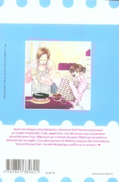 après une longue valse-hésitation, suzana et eichi forent désormais un couple inséparable ! yuki, quant à lui, s'est découvert une mystérieuse attraction pour suzu. mais tout ceci n'est pas du goût d'eichi qui est prêt à se défendre bec et ongles. c'est alors que par un fâcheux concours de circonstances, suzu embrasse yuki ! un vent de panique souffle sur le campus !