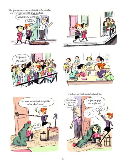 Souvenez-vous. Nous avions laissé Verte, l’apprentie sorcière rebelle, rayonnante. Entourée de femmes, comme depuis toujours : sa mère Ursule et sa grand-mère Anastabotte. Mais aussi, c’était nouveau pour elle, quelque hommes : Soufi, le garçon de sa classe grâce auquel elle avait retrouvé son père, et celui-ci, Gérard, l’entraîneur de foot. Les choses pourraient être simples désormais. Bien sûr, elle ne le seront pas. Soufi déménage et Gérard a un père, lui aussi : Raymond, un ancien commissaire de police. Verte pleure, Verte rit, Verte est très entourée soudain et pourtant elle se sent seule. Heureusement, une fille vient d’emménager avec sa mère dans le bâtiment B. C’est Pome. Verte se dit que c’est un nom parfait pour une alter ego, une future meilleure amie, une pareille en tout. En tout ? Même en sorcellerie ?