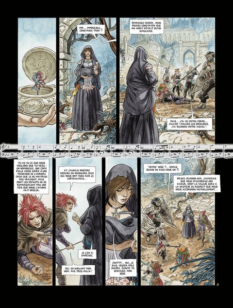 Accompagnée par Zarak, un petit démon espiègle avec lequel elle communique par télépathie, Vesper prend le chemin de la cité de Valestiel, là où Crimson serait emprisonné. Elle sait qu'elle ne pourra pas sauver Crimson avec la seule aide de Zarak. Déterminée comme jamais, elle décide de retrouver ses anciens compagnons, les Chevaliers de Nyx, et tente de les rallier à sa cause. Pour Vesper, une longue quête commence. Mais une ombre demeure au tableau : Crimson est-il encore vivant ? Et, quand bien le serait-il, dans quel état a-t-il été laissé ? Quoiqu'il advienne, leurs vies ne seront plus pareilles. Et Vesper, dépassée par la haine, pourrait bien se voir emportée par sa chimère intérieure... Avec cette saga en six tomes, inspirée par le jeu vidéo Final Fantasy, le dessinateur de Barracuda (scénario de Dufaux) et des Chevaliers d'Héliopolis (scénario de Jodorowsky) signe sa première série de bande dessinée en solo.
