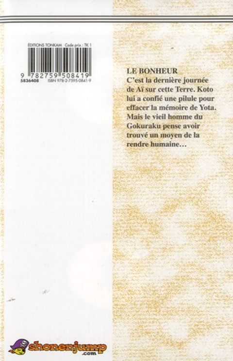 Shinnaï a enfin compris le projet des instances supérieures du Gokuraku et s’élève devant tant d’horreur. Il prévient Yota et lui propose un plan pour sauver Aï. Mais Yota peut y laisser sa vie... Koto l’a prévenu, et il ne se laissera pas faire. Pendant que les derniers jours du programme d’Aï se débobinent inexorablement, Yota se bat de toutes ses forces...