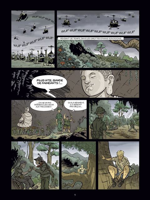 Vietnam, fin 1971. Revenu d'un voyage au bout de l'enfer, le capitaine Wesson parvient finalement à rejoindre sa compagnie. Il révèle au général Walter le destin funeste qu'a connu sa patrouille : forcés de retrouver un imposant Bouddha en bronze en pleine jungle, ils ont subi une embuscade dont lui seul est sorti vivant. Une statue qui semble l'objet de toutes les convoitises : des guerriers Viet-congs, un antiquaire véreux et même le FBI cherchent à s'en emparer ! Aussi intrigué qu'agacé, le général charge Wesson de repartir sur sa trace pour éclaircir l'affaire. Pour l'aider, il lui adjoint une équipe de vétérans de la guerre d'Algérie aux méthodes musclées : les gazelles. Fin du diptyque signé Brrémaud et Chico Pacheco dans la jungle hostile du Vietnam, entre Platoon et Indiana Jones !