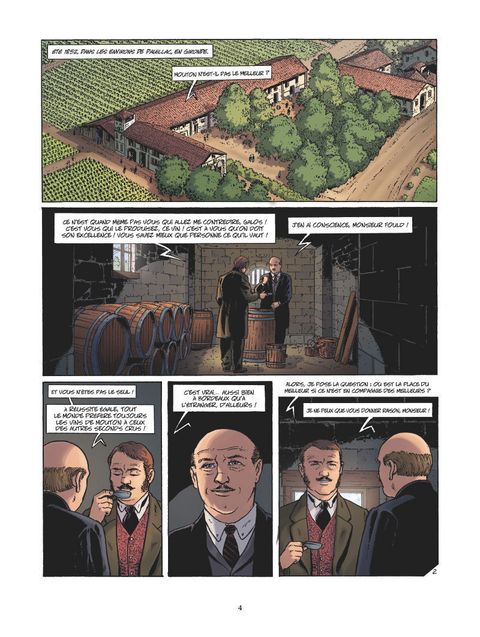 Chroniques d'une hiérarchie de l'excellenceÀ la fin des années 1840, les vignes anglaises se voient affligées d'un mal étrange. L'apparition d'une fine poudre blanche se déposant sur les feuilles, et la révélation d'un parasite qui s'apprête à déferler sur l'Europe entière : l'Oïdum. Et alors que celui-ci atteint progressivement les terres du Médoc, celles-ci font face à un autre défi. Pour l'exposition universelle de 1855 qui se prépare à Paris, la Chambre de Commerce de Bordeaux décide de récupérer la liste de tous les grands domaines de la région pour établir une hiérarchie sur la base d'une tradition d'un siècle et demi de classification informelle. Un classement du premier au cinquième cru qui, encore en vigueur aujourd'hui, n'a pas fini de faire débat...