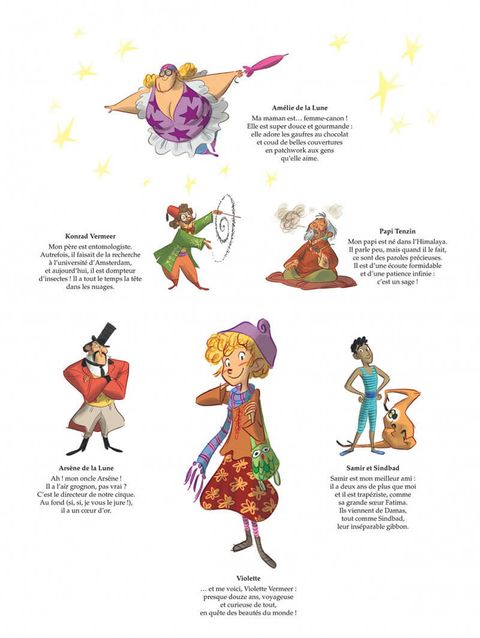 Bienvenue dans le monde merveilleux du Cirque de la lune ! Votre guide ? L'astucieuse Violette, fille d'une femme-canon et d'un dompteur d'insectes. Cette gamine au grand coeur vous entraîne dans ses pérégrinations. De Paris au sommet de l'Himalaya en passant par les grandes plaines américaines, découvrez ceux qui font vibrer notre héroïne aux cheveux d'ange : Henri de Toulouse-Lautrec, Antonin Dvorák et bien d'autres !