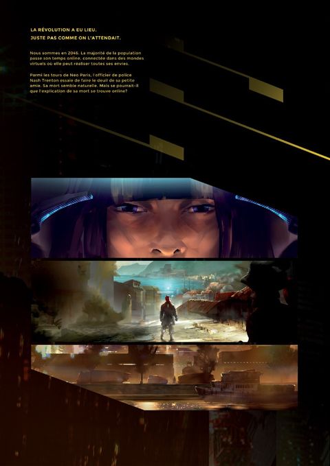 Nous sommes en 2042. La majorité de la population passe son temps online, connectée dans des mondes virtuels où elle peut réaliser toutes ses envies. Parmi les tours de Neo Paris, l'officier de police Nash Trenton essaie de faire le deuil de sa petite amie, Helena. Sa mort semble naturelle, mais se pourrait-il que l'explication de sa mort se trouve online ? Lors de son investigation virtuelle, Nash rencontre une personne intéressée par une série de morts suspectes, dont Helena semble faire partie. Noriko, une ex militaire japonaise est devenue shadow agent pour Trendshield, l'une des entreprises derrière les mondes virtuels. Les deux s'allient afin d'en découvrir plus. Mais, au Japon comme à Paris, le prix à payer lors de cette enquête s'avère lourd. Cette bande dessinée est un préquel au film Virtual Revolution, sorti en 2016. L'album est écrit par le réalisateur du film. Ce dernier s'est fait remarquer en festivals (47 prix !) avec une satisfaction spectateurs très élevée.