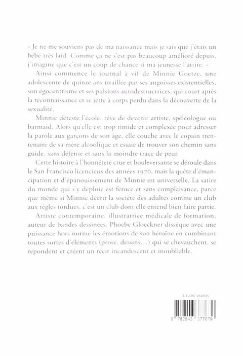 « Je ne me souviens pas de ma naissance mais je sais que j'étais un bébé très laid. Comme ça ne s'est pas beaucoup amélioré depuis, j'imagine que je dois m'estimer heureuse si c'est ma jeunesse qui l'attire. » Ainsi commence l'émouvant journal de Minnie Goetze, une adolescente de quinze ans tiraillée par ses angoisses existentielles adolescentes, son égocentrisme et ses pulsions autodestructrices, qui court après la reconnaissance et se précipite un peu vite dans la sexualité. Minnie déteste l'école, rêve de devenir artiste, spéléologue ou barmaid. Alors qu'elle est trop timide et complexée pour adresser la parole aux garçons de son âge, elle couche avec le copain trentenaire de sa mère et essaie de trouver son chemin sans guide, sans défense, et pourtant sans la moindre trace de peur. Cette histoire se déroule dans le San Francisco licencieux des années 1970, mais la quête d'émancipation et d'épa-nouissement de Minnie est aussi universelle qu'intemporelle. La satire du monde qui s'y déploie est féroce mais sans complaisance, parce que même si Minnie décrit la société des adultes comme un club aux règles plus que questionnables, c'est un club dont elle entend bien se voir remettre un jour une carte de membre.