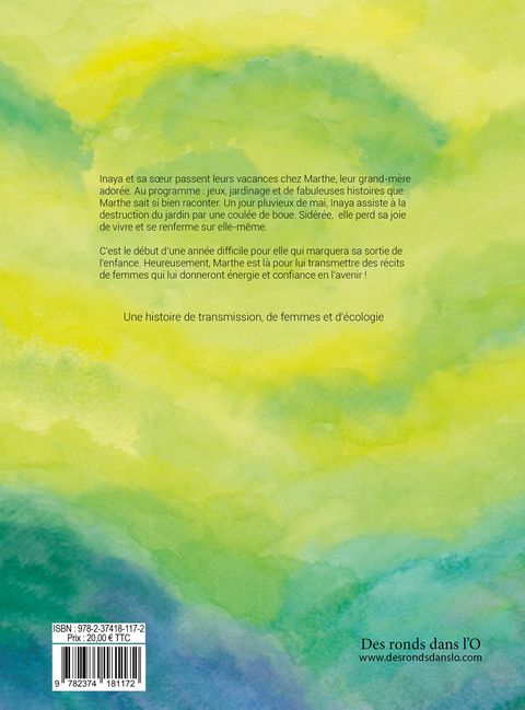 Récit écoféministe enthousiasmant et positif. . Résumé : lnaya, 10 ans, passe ses vacances avec sa petite soeur chez Marthe, sa grand-mère. Au programme, jeux, jardinage et histoires que Marthe sait si bien raconter. Un jour pluvieux de mai, lnaya assiste, terrorisée, à la destruction du jardin par une coulée de boue et subit un peu plus tard, une agression par des garçons, au collège. Sidérée par ces évènements, lnaya perd sa joie de vivre et se renferme sur elle-même. Ce sont les récits de femmes, celles du mouvement Chipko, de Wangari Maathai ou encore ceux de sa propre grand-mère, qui aideront l'enfant à guérir de ces traumatismes. Progressivement, Inaya retrouvera confiance et énergie pour finalement assister à la renaissance de la nature, symbole d'une nouvelle vie qui s'annonce pour elle.