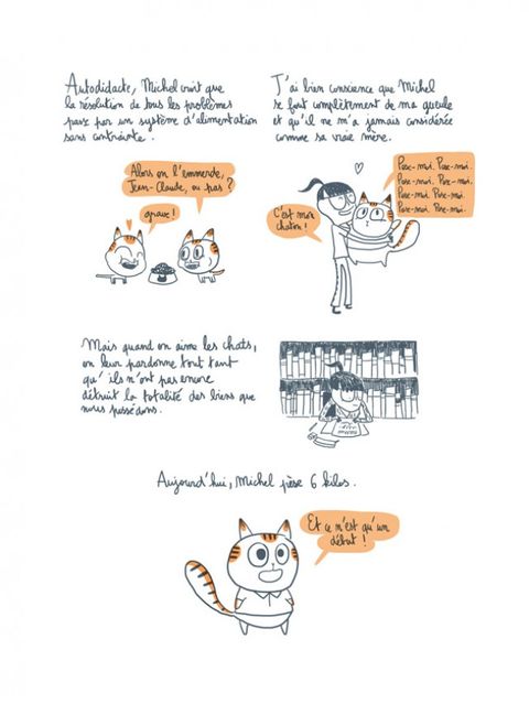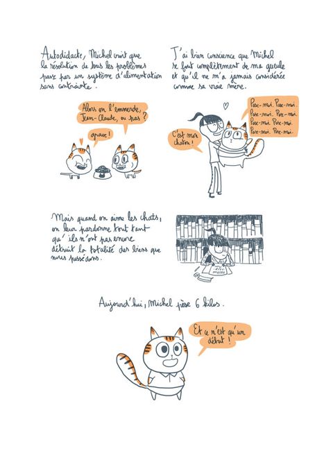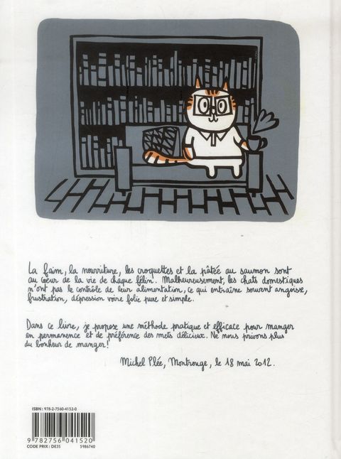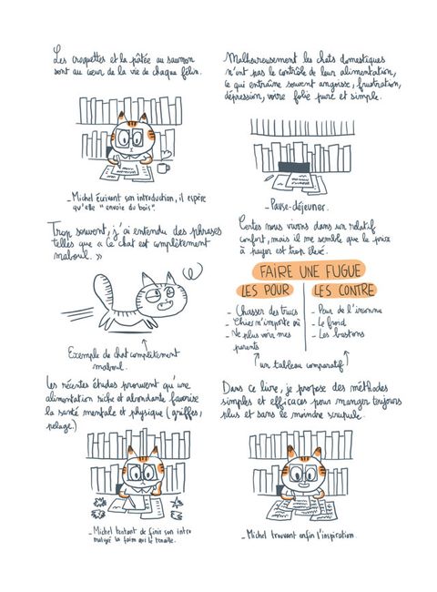 Michel pèse 6 kilos. Chat roux de 2 ans originaire de Nantes, il propose des méthodes simples et efficaces pour manger toujours plus et sans le moindre scrupule. Des astuces pratiques pour un bien-être quotidien et un questionnement philosophique sur cette quête de l'impossible : comment manger en permanence et de préférence des mets délicieux ? Ne nous privons plus du bonheur de manger !