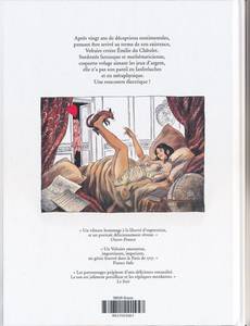 Clément Oubrerie poursuit son adaptation libre de la vie de Voltaire. Dans ce deuxième tome, notre héros fait la connaissance d'Émilie du Châtelet, jeune femme brillante et haute en couleurs. Lorsqu'il la rencontre, Voltaire est immédiatement attiré par Émilie, par ses capacités intellectuelles hors du commun et son extravagance. Pour la première fois de sa vie, il sent qu'il est véritablement (très) amoureux. Lorsque Émilie se laissera finalement séduire, cela ne sera pas sans heurts... Disons que notre malheureux philosophe devra alors faire preuve, justement, de philosophie !