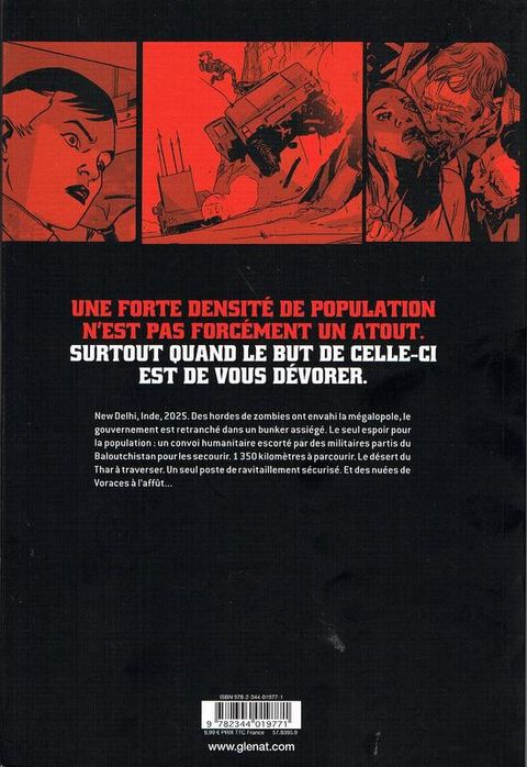 La démographie est un atout. Sauf quand votre propre population veut vous dévorer. New Dehli, Inde, 2025. Des hordes de zombies ont envahi la mégalopole, le gouvernement est retranché dans un bunker assiégé. Le seul espoir pour la population : un convoi humanitaire escorté par des militaires partis du Baluchistan pour les secourir. 1 350 kilomètres à parcourir. Le désert du Thar à traverser. Un seul poste de ravitaillement sécurisé. Et des nuées de Voraces à l'affût... Christophe Bec et Stefano Landini revisitent le récit de zombie et nous plongent au coeur de la des contrées mystérieuses et fascinantes de l'Inde. Voraces, c'est World War Z au pays de Bollywood... mais sans happy end !