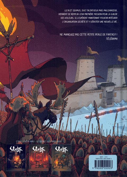 Cette petite peste tient entre ses mains le destin du royaume... » Contraints de faire leurs preuves dans la capitale du royaume, Lilya et Seamus, s’ils ont réussi leur première mission pour la guilde des voleurs, n’en sont pas pour autant tirés d’affaire. En effet, le livre qu’ils ont réussi à dérober ne semble pas intéresser réellement leur commanditaire. Par contre, le fragment de pendentif qu’il contient, c’est une autre histoire... Une histoire qu’ils vont rapidement apprendre de la bouche même du fils du roi, celui-là même qui avait requis leurs services. Ils doivent maintenant aller voler les autres morceaux de ce bijou enchanté, seul capable de maîtriser la légendaire Armée de la Pierre de feu. Encore une fois, nos deux compères se frottent à plus puissants qu’eux, et comme toujours, ça ne semble guère leur porter chance !