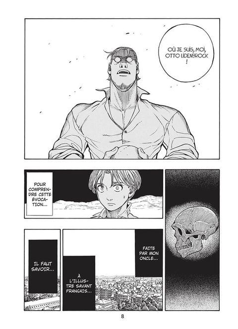 Après avoir essuyé une énorme tempête, Axel, Hans et le professeur Lidenbrock s'échouent près d'une immense plaine d'ossements d'animaux préhistoriques. Mais très vite, ils découvrent un crâne humain ! Des êtres humains auraient-ils vécu sous Terre ? Y vivent-ils encore ? Les explorateurs ne sont pas au bout de leurs surprises !