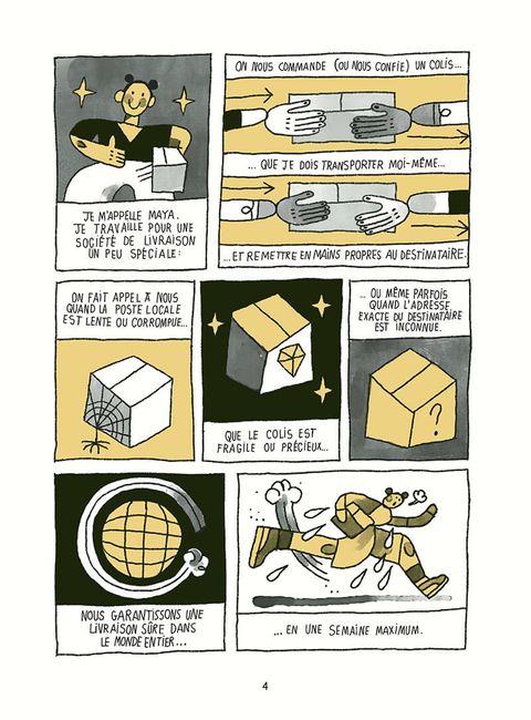 La livraison express en terre inconnue de Maya ne se déroule pas comme prévu : administration ubuesque, transports archaïques, territoire impraticable, climat détestable. Elle finit par s'avouer impuissante, profitant de l'occasion pour observer ce pays fantaisiste et anachronique et remettre en question son rapport au temps. Parfois, les voyages ne sont pas uniquement faits d'action et d'aventures...