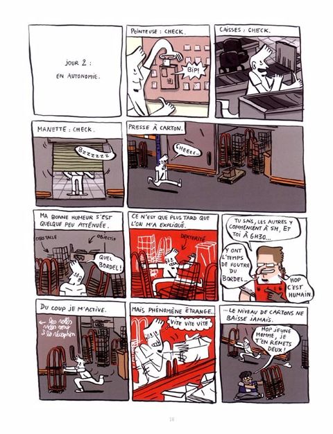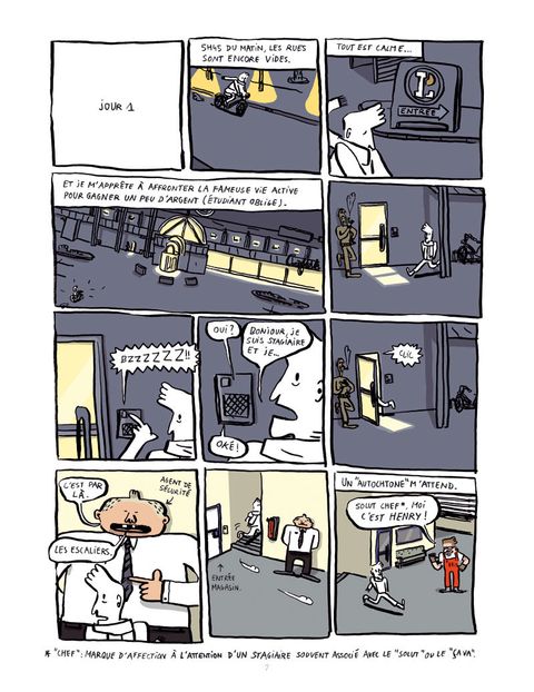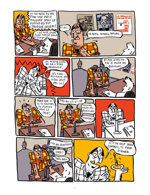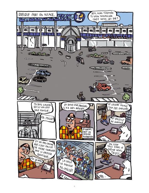Issu de l'expérience de stage de Timothée Ostermann, rafraîchissant au milieu des palettes de yaourts est à la plongée dans un quotidien familier et dérisoire, mais de découvrir l'envers souvent étonnant (et attachant) du décor. On retrouve des portraits drôles et tendres d'employés et on y décortique les mécanismes pour vous faire acheter... le tout avec beaucoup d'humour ! Les premiers pas d'un jeune auteur à suivre !