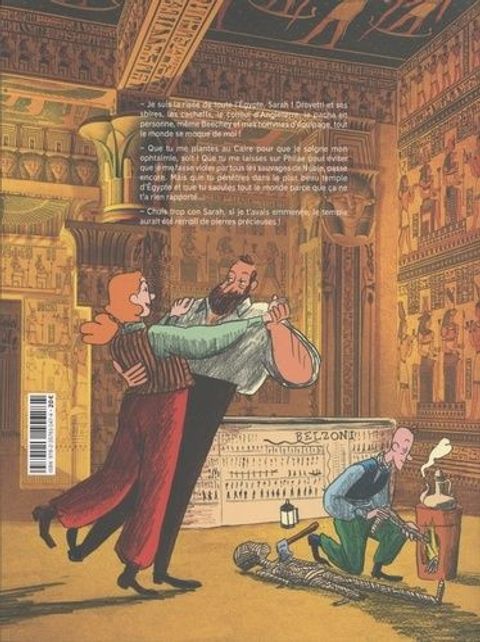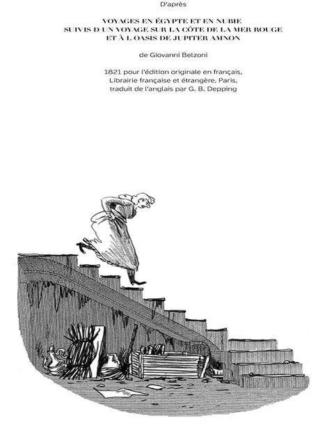 Après avoir ramené à Alexandrie la tête de Ramsès II, Giambattista Belzoni retourne en Nubie pour terminer les travaux de désensablement du temple d'Abou Simbel et, peut-être, avoir la chance d'y pénétrer. Mais sa rivalité avec le consul de France Bernardino Drovetti tourne à la guerre ouverte... Pendant ce temps, Sarah Belzoni entreprend un grand voyage à Jérusalem, accompagnée de son serviteur James. Adaptation en bande dessinée du journal d'un géant de 2 mètres que rien ne prédisposait à devenir le pionnier de l'égyptologie. Comme dans le 1er tome (sélection officielle FIBD 2018), Grégory Jarry adapte le journal de Giambattista Belzoni, Nicole Augereau celui de Sarah, et Lucie Castel dessine le tout sur fond de gravures d'époque.