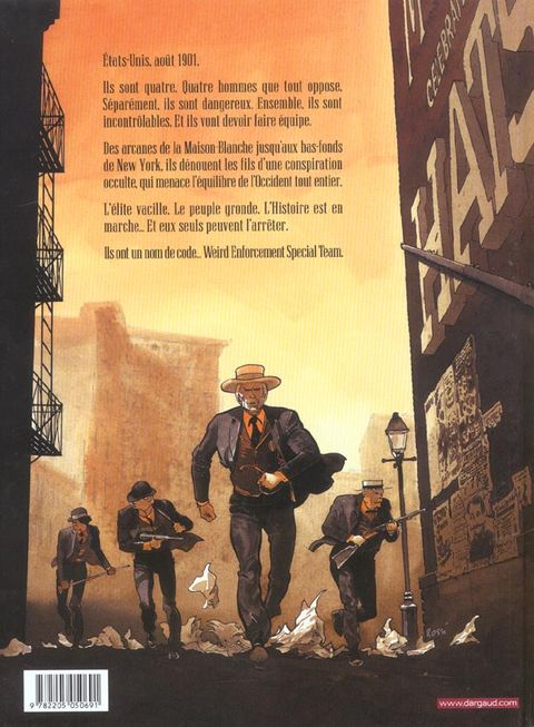 Paris, 1895. Catastrophe en gare Montparnasse ! Un train lancé à toute allure oublie de s'arrêter. Il termine sa course folle rue de Rennes. Accident ? Ce train transportait en effet un certain Studwater, petit homme replet chargé de convoyer une valise destinée à Adam Clayton, responsable de la sécurité du Président des États-Unis. Studwater est mort. Mais pas dans l'accident : on l'a assassiné juste après. Et sa mallette, pourtant attachée à son poignet par une solide chaîne, a disparu... Quelques années plus tard, de l'autre côté de l'Atlantique, un notable de Long Island se fait sauter la cervelle. Banal suicide ? Là encore, la vérité est peut-être ailleurs. C'est en tout cas l'avis d'Adam Clayton, qui craint pour la sécurité du Président. Dans l'immédiat, c'est surtout la sienne qui est menacée : à la Maison Blanche, on décide de se passer de ses services. Ses méthodes ont vieilli, paraît-il. Clayton se tourne alors vers l'un de ses amis, un certain Morton Chapel. Un personnage étonnant, ce Chapel. Baroudeur fort en gueule au passé mystérieux, il est le seul capable de dénouer les fils enchevêtrés des meurtres et des suicides qui font tomber comme des mouches des personnages aux apparences fort respectables. Pour mener à bien sa mission, il remet sur pied une équipe qui a fait ses preuves lors des guerres indiennes. Son nom de code : W.E.S.T. " Weird Enforcement Special Team ". Avec des lascars pareils, ceux qui tirent les ficelles de ces événements inquiétants ont du souci à se faire...