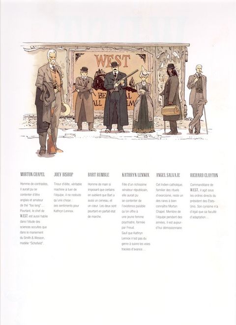 Deux ans après la parution du dernier cycle de WEST, voici un volume qui ravira les fans de cette série d'exception ! Une occasion de retrouver tous ses personnages - Morton Chapel, Bart, Kathryn, Angel. une équipe de mercenaires au service de la Maison-Blanche, qui lutte contre les forces occultes. Un cahier graphique enrichira cette intégrale.