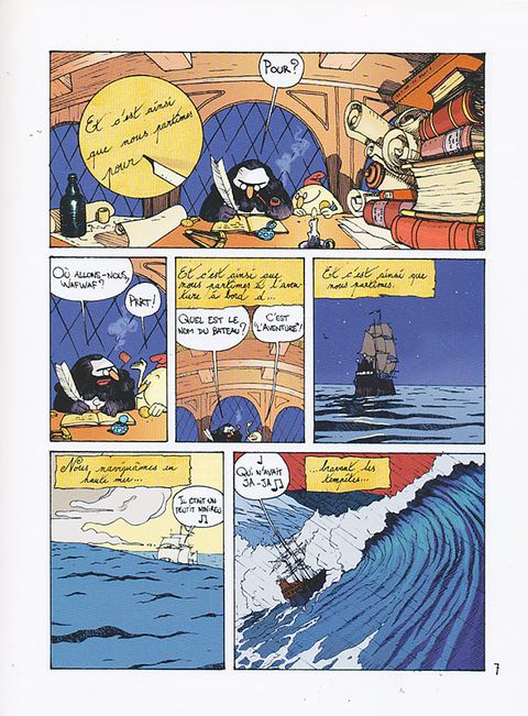 Parti à l'aventure pour une destination inconnue du capitaine lui-même, l'équipage rassemblé par Wafwaf sera dépouillé par les pirates du terrible Barbe-Cul. Mais il en faut plus pour décourager nos héros, qui par un heureux concours de circonstances (ouf !) récupéreront leur navire pour repartir vers leur destin d'aventuriers ratés... Apparemment simples et linéaires, ces histoires sont en réalité bourrées de jeux de mots et de situations plus absurdes les unes que les autres ! Préparez-vous à pister des 2e ou 3e sens au coin de chaque planche... voici une BD pleine d'énergie qui vous contraindra jusqu'à la fin à garder les deux yeux ouverts - et les zygomatiques contractés !