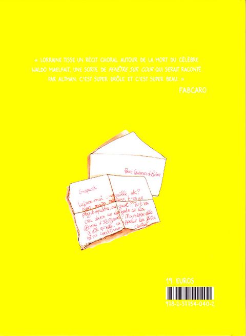 Waldo Maellfait, immense vedette de la chanson française, est assassiné à son domicile. Des personnages qui n'ont aucun lien les uns avec les autres, tantôt attachants, insupportables, passionnés, furieux ou dépressifs, réagissent à ce décès depuis leur domicile. Entre polar et soap opera, une histoire à la fois terrifiante et mièvre dans laquelle se mêlent humour et absurde.