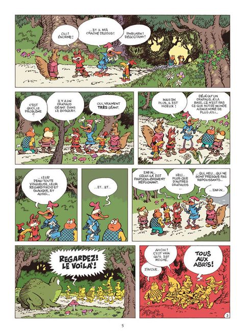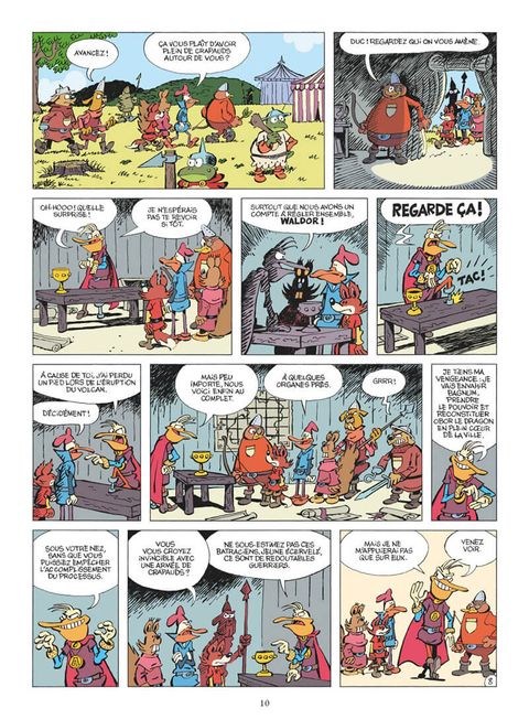 Obor du gouffre. Le Duc Avengine n'a pas dit son dernier mot. Malgré sa défaite face à Waldor et l'état lamentable de son armée, il compte toujours rétablir la puissance d'Obor et attaquer la cité de Bagnum. De leur côté, Waldor, Bromir et Cassenèfle ne se soucient plus de toute cette affaire et sont retournés au calme, dans la paisible clairière où se trouvent leurs foyers. Mais l'apparition soudaine de crapauds géants dans leur forêt ne présage malheureusement rien de bon... Irrésistiblement attiré par le grabuge et la promesse du tumulte, Waldor suit ces grandes bêtes visqueuses pour comprendre les raisons de leur présence. Jamais il n'aurait pu deviner les nouvelles manigances de son terrible ennemi... David De Thuin continue de planter le ton et le décor de sa nouvelle série d'aventure jeunesse médiéval fantastique. Un deuxième tome qui vise toujours aussi juste, surprenant et absolument charmant.