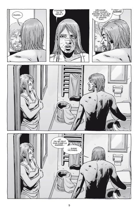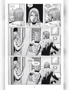 Rick confronte Negan au Sanctuaire, annonçant la fin des livraisons de marchandises de la Colline et proposant une trêve. Les dessins saisissants et cinétiques captent l'intensité de cette bataille épique, ajoutant une dimension visuelle palpitante à l'histoire.