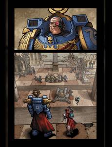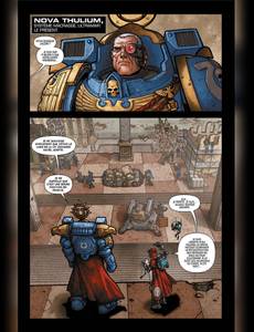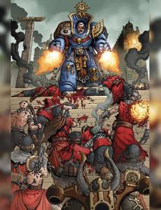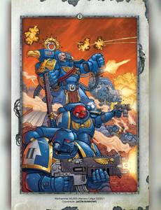 La couverture donne le ton du récit et des dessins. Une chouette aventure dans le monde des Space Marines de Warhammer 40k.