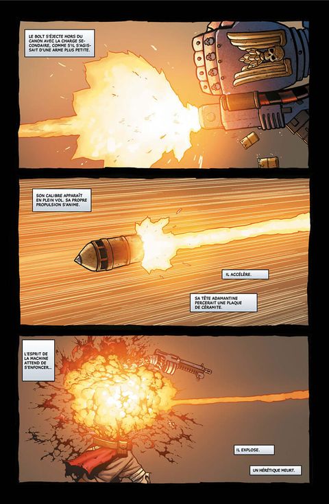 Un récit qui correspond totalement à ce que Warhammer 40.000 promet. C’est sanglant, violent, bêtement drôle parfois, mais surtout riche. L’univers se déploie sous nos en utilisant les origines de Marneus pour nous en apprendre toujours plus, sans oublier les scènes d’action tonitruantes.