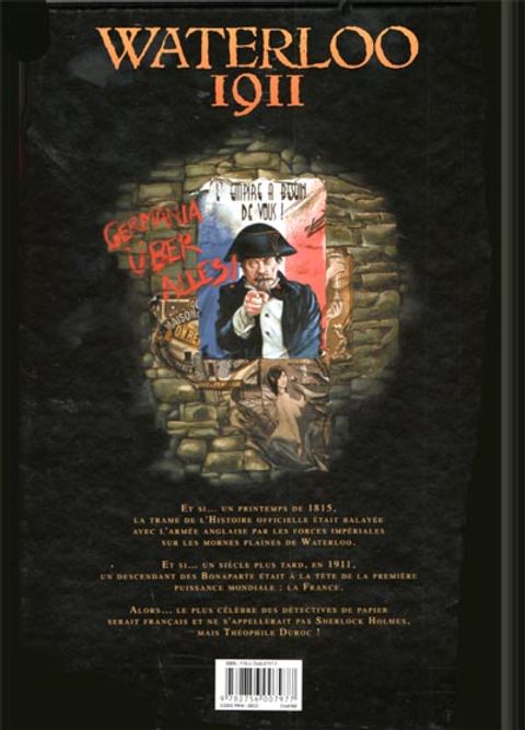 Waterloo 1911 ou le récit d'une enquête menée par Théophile Duroc qui, s'il avait été anglais, se serait appelé Sherlock Holmes... Un objet précieux et mystérieux a été dérobé dans une exposition située dans un endroit inaccessible pour qui n'y est invité. Le responsable de cette exposition commandite Duroc. Commence alors une enquête capricieuse qui s'avèrera particulièrement dangereuse, romanesque et truffée de bons mots.