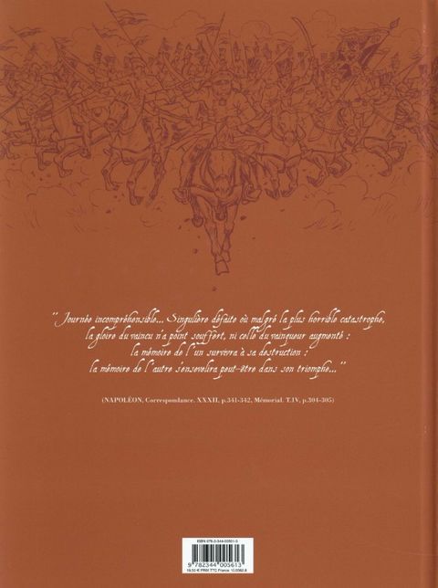 One-shot complété d'un dossier de 14 pages en fin d'album rédigé par Jean Tulard (l'historien de référence sur la période napoléonienne), revenant en détail sur le déroulement de la bataille.