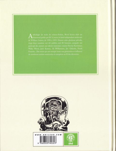 Anthologie bimensuelle de science-fiction, Weird Science a fait son apparition en mai 1950. Publié par Bill Gaines sous son label EC Comics et édité par Al Feldstein, le titre remplaça Saddle Romance et, en quatre années d'existence, 22 numéros furent lancés. On y retrouve les dessinateurs habituels de l'éditeur : Frank Frazetta, Al Williamson, Joe Orlando, George Evans, Harvey Kurtzman, George Roussos, Harrison, Will Elder, Jack Kamen, Sid Check ou Jack Olesen. Le présent volume regroupe l'intégralité des histoires, les couvertures originales et les couvertures de l'édition française.