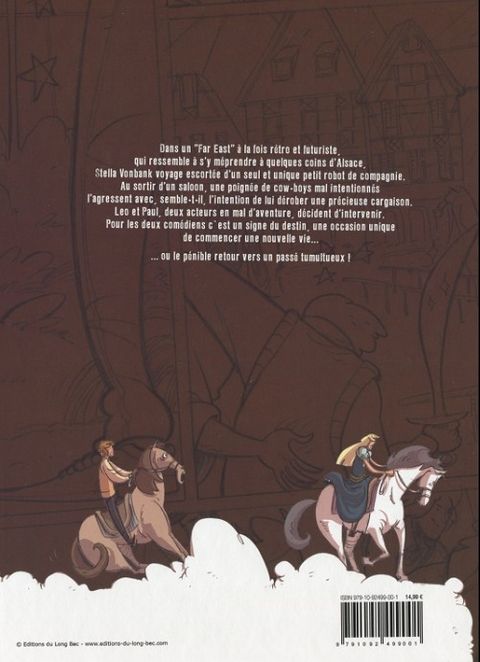 Dans un « Far East » qui ressemble à s'y méprendre à quelques coins d'Alsace, Stella Vonbank voyage escortée d'un seul et unique petit robot de compagnie. Au sortir d'un saloon, une poignée de cow-boys mal intentionnés l'agressent avec, semble-t-il, l'intention de lui dérober une précieuse cargaison. Leo et Paul, deux acteurs en mal d'aventure, décident d'intervenir. Et c'est ainsi que leurs ennuis commencent. Un western au ton décalé, où vous croiserez aussi quelques personnages célèbres. Dans cet univers à la fois rétro et futuriste, vengeance, revolvers et coups fourrés font bon ménage ! Voici donc le premier western fantasy. alsacien, destiné à un public adolescent/adulte !