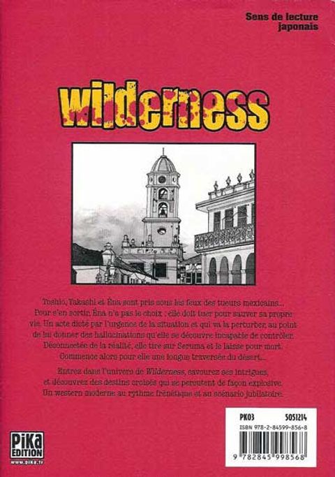 Toshio, Takashi et Ena sont pris sous les feux des tueurs mexicains... Pour s'en sortir, Ena n'a pas le choix : elle doit tuer pour sauver sa propre vie. Un acte dicté par l'urgence de la situation et qui va la perturber au point de lui donner des hallucinations qu'elle se découvre incapable de contrôler. Déconnectée de la réalité, elle tire sur Seruma et le laisse pour mort. Commence alors pour elle une longue traversée du désert... Entrez dans l'univers de Wilderness, savourez ses intrigues, et découvrez des destins croisés qui se percutent de façon explosive. Un western frénétique et au scénario jubilatoire.