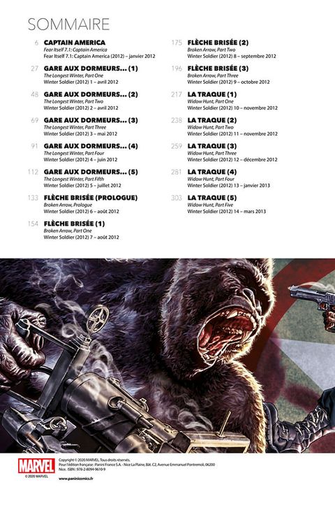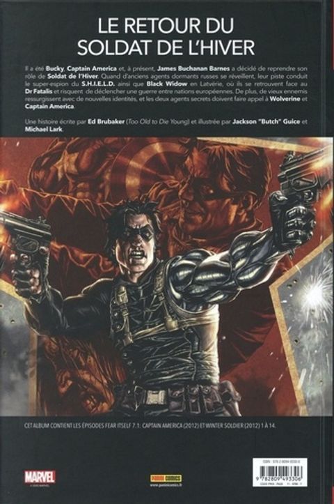 Thriller sombre et palpitant lancé par un très bon chapitre d'introduction post-Fear Itself, et avec un chouette duo Bucky/Nat ! Brubaker ne se repose pas uniquement sur l'action dans cette histoire qui secoue psychologiquement Bucky, du fait d'un antagoniste qui le frappe au cœur avec cruauté. L'ambiance graphique de Butch (...) Voir le commentaire