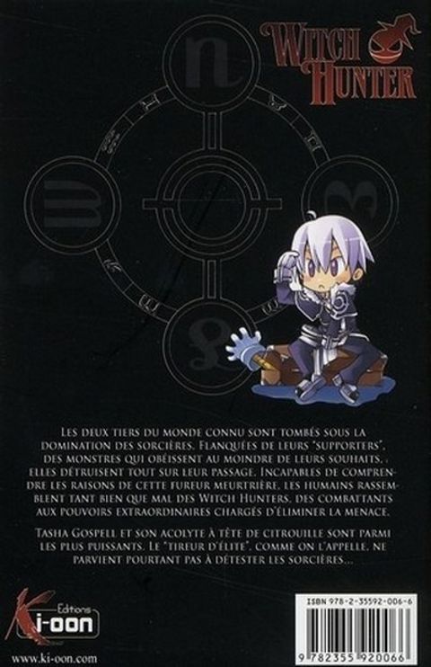 Les deux tiers du monde connu sont tombés sous la domination des sorcières. Flanquées de leurs " supporters ", des monstres qui obéissent au moindre de leurs souhaits, elles détruisent tout sur leur passage. incapables de comprendre les raisons de cette fureur meurtrière, les humains rassemblent tant bien que mal des witch hunters, des combattants aux pouvoirs extraordinaires chargés d'éliminer la menace. tasha gospell et son acolyte à tête de citrouille sont parmi les plus puissants. Le " tireur d'élite ", comme on l'appelle, ne parvient pourtant pas à détester les sorcières...