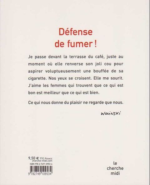 Je passe devant la terrasse du café, juste au moment où elle renverse son joli cou pour aspirer voluptueusement une bouffée de sa cigarette. Nos yeux se croisent. Elle me sourit. J'aime les femmes qui trouvent que ce qui est bon est meilleur que ce qui est bien. Ce qui nous donne du plaisir ne regarde que nous. WOLINSKI