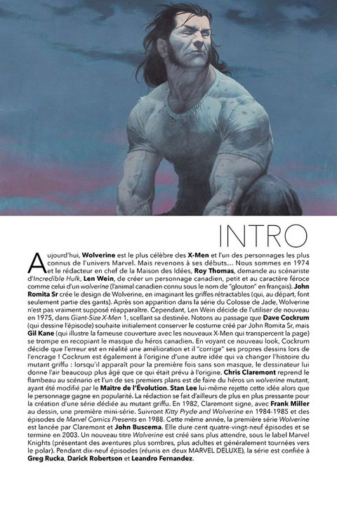 On peut le traiter de mutos ou d'animal, le considérer comme un chasseur ou comme un héros, Wolverine s'en fiche. Il est juste là pour faire le sale boulot, il le sait et s'en accommode. Un jour, il rencontre sa voisine de palier, Lucy Braddock. Elle qui surnomme Logan le Mauvais Garçon, l'appelle à l'aide. Il est temps pour le mutant de partir en mission. Et comme c'est à prévoir, elle sera sanglante. En 2003, la série Wolverine est relancée sous le label Marvel Knight qui propose des titres moins super-héroïques, plus orientés polar et destinés à un public adulte. Marvel confie Wolverine à Greg Rucka (Lazarus) et Darick Robertson (Transmetropolitan) pour dix-neuf épisodes qui seront réunis dans deux MARVEL DELUXE publiés le même mois.